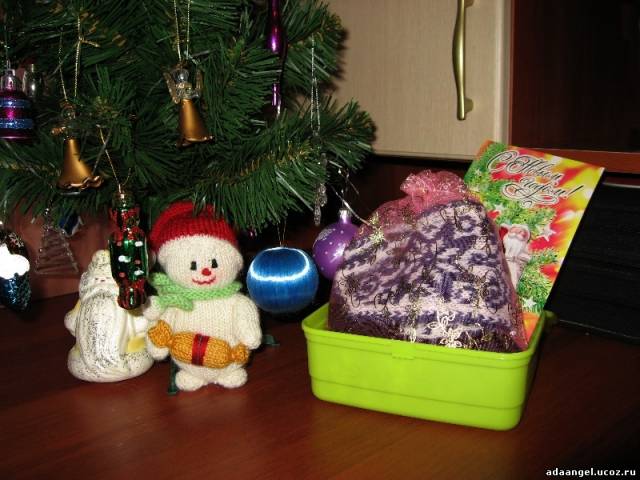 А сколько было эмоций (даже шумовых!), когда в коробочке я увидела маленькое вязанное чудо, о котором даже не догадывалась! Поставила его под елочку: